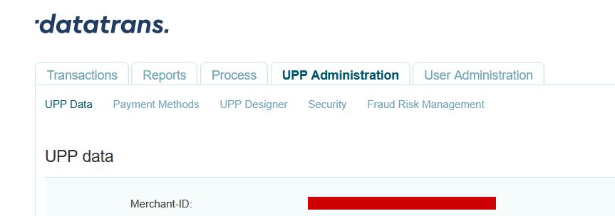 To configure your payment integration correctly, you need your Datatrans Merchant ID. This ID is available within the Datatrans Webadmin Tool (Backoffice) under the UPP settings section. Follow the steps below to locate it: