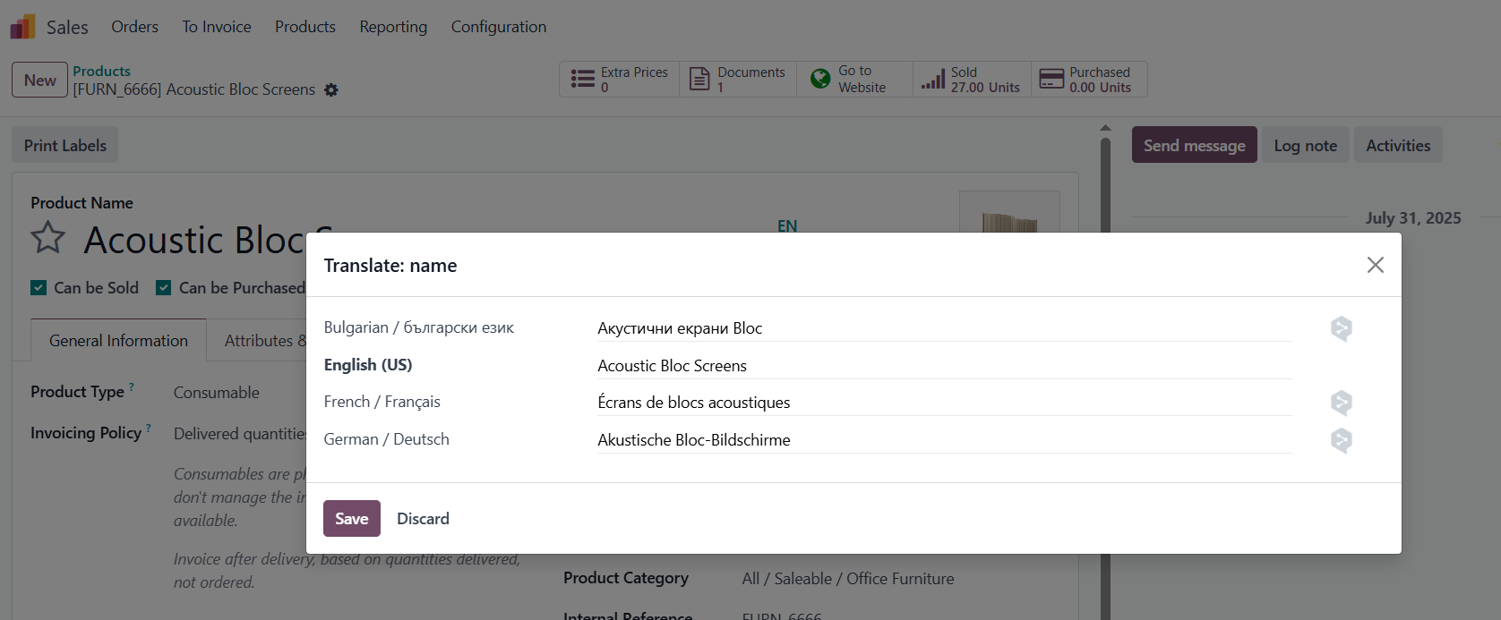 Das DeepL Translate-Modul ist ein leistungsstarkes Übersetzungstool für Odoo, das die mehrsprachige Übersetzung von Geschäftsdaten vereinfacht und automatisiert. Es ist nahtlos in den DeepL-Übersetzungsdienst integriert und ermöglicht es Benutzern, alle übersetzbaren Felder direkt in der Odoo-Oberfläche zu übersetzen, wodurch die Effizienz und Konsistenz zwischen den Sprachen verbessert wird.