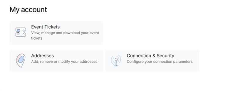 Auf der Startseite des Portals (/my/home) wird eine Karte „Veranstaltungstickets“ hinzugefügt, auf der ein Ticket-Symbol die Anzahl der Anmeldungen anzeigt. - • Ticketübersicht