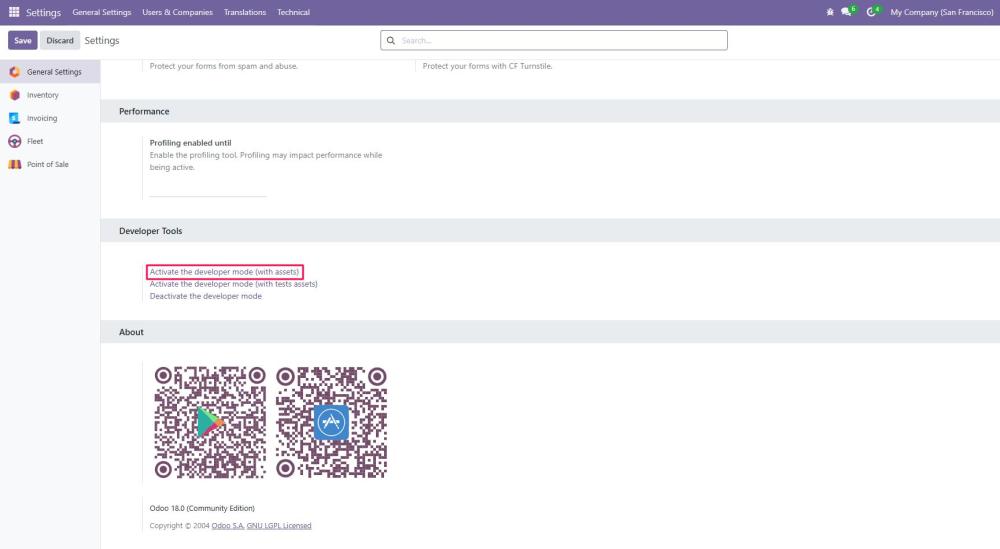 - Activate Developer Mode in Odoo.