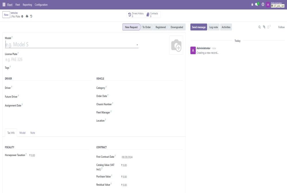 - Navigate to the Fleet Management module in Odoo.