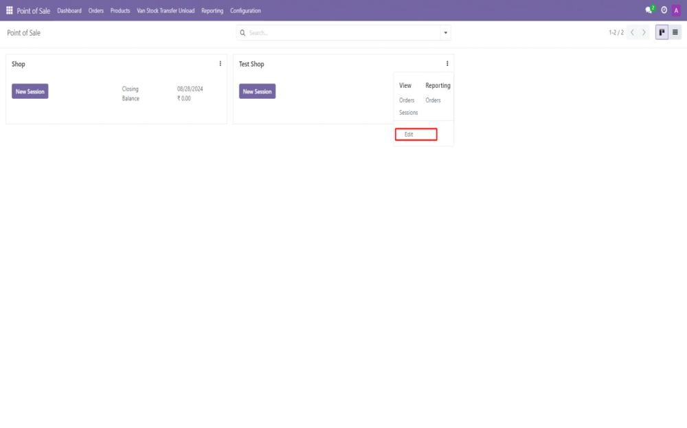 - Click on the three-dot menu next to the POS and select Edit.