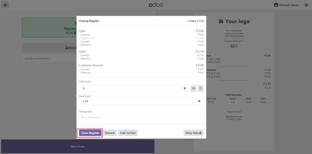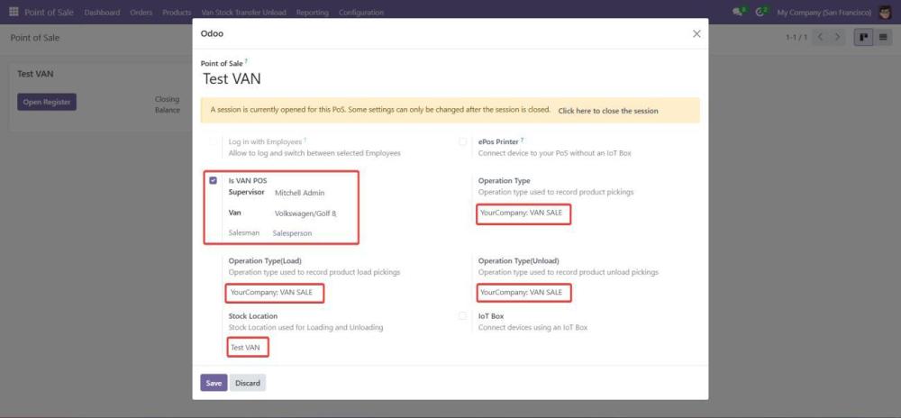While creating the new POS, ensure that the relevant operation types (e.g., VAN_SALE, VAN_SALE_LOAD, VAN_SALE_UNLOAD) are added. - Close the Sale Session After the Sale: