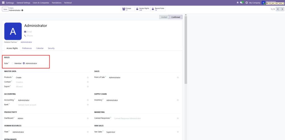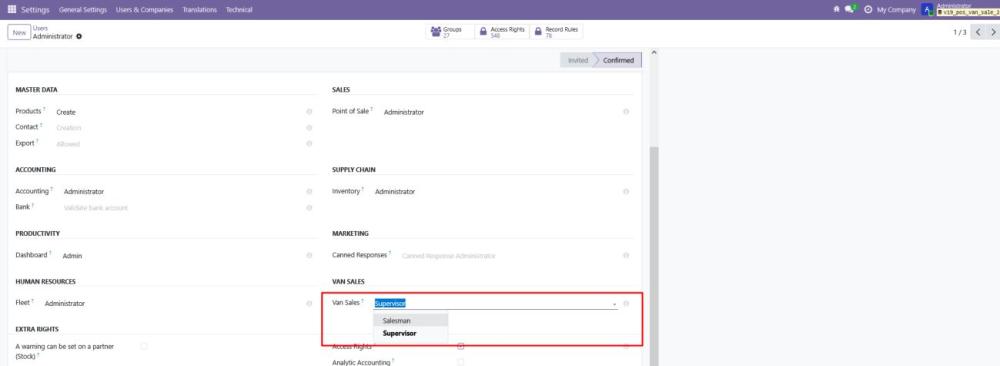 - This step ensures the Supervisor role has appropriate administrative access to manage van sales efficiently.