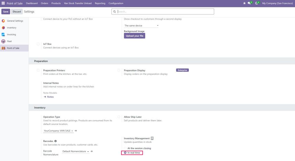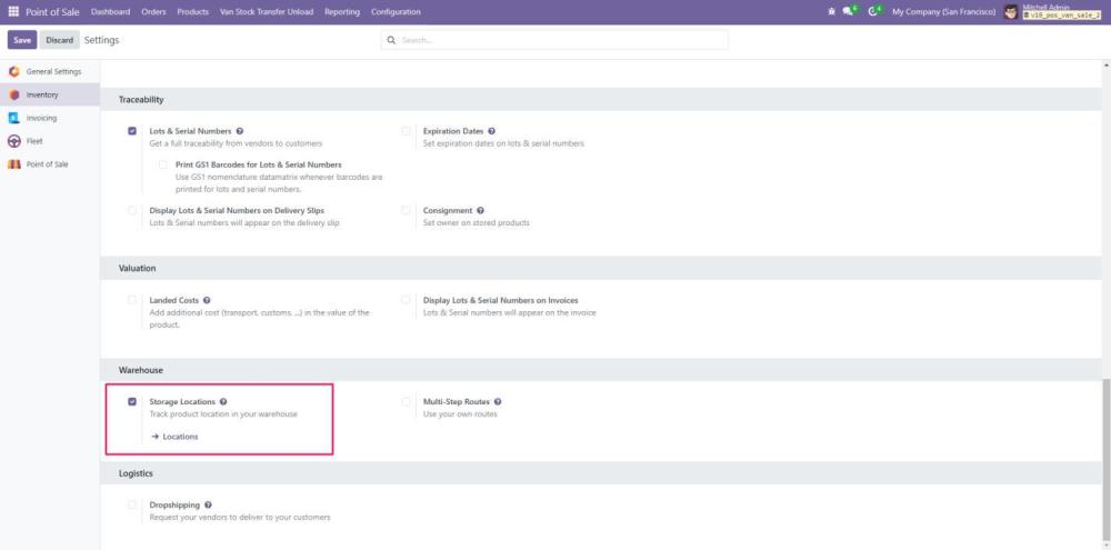 Begin by installing the Van Point of Sale module in your Odoo system. - Activate the Settings in the Inventory Module: