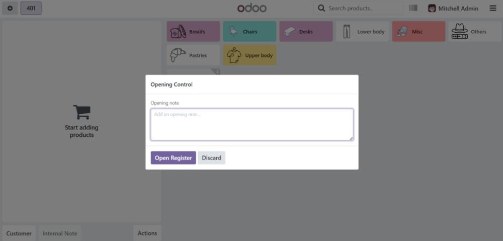 - When opening the POS session, a prompt will appear asking for an Opening Note.