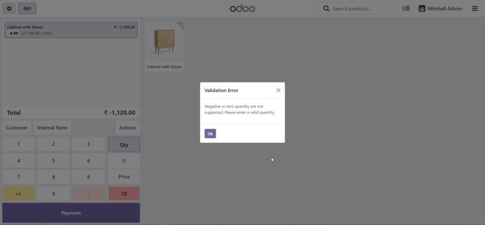 Screenshot 31: Van Point of Sale – Validation for Negative or Zero Quantity