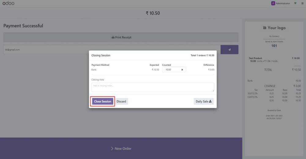 - Once all products are sold, click Close Session.
