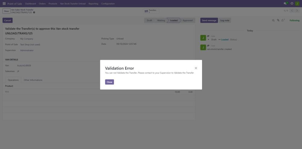 Ensure that the load is validated before being transferred. This step ensures that the stock is properly allocated to the van. - Manager Grants Access to Transfer the Load: