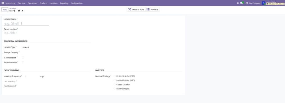 - Location Type: Specify the type (e.g., internal, customer, supplier).