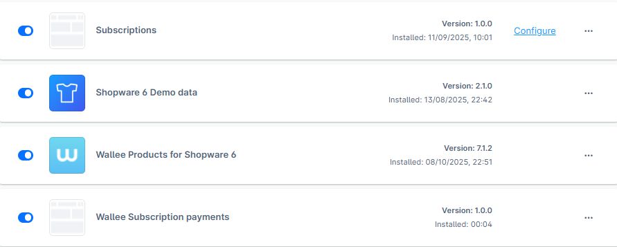 Important: To enable recurring payments with the Wallee plugin in Shopware Community Edition: