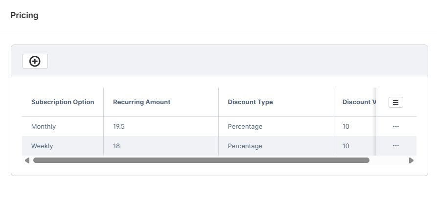 The next section, ‘Pricing,’ lists the subscription pricing and available discount options, along with the recurring amount for each subscription option, which applies to all subsequent orders.