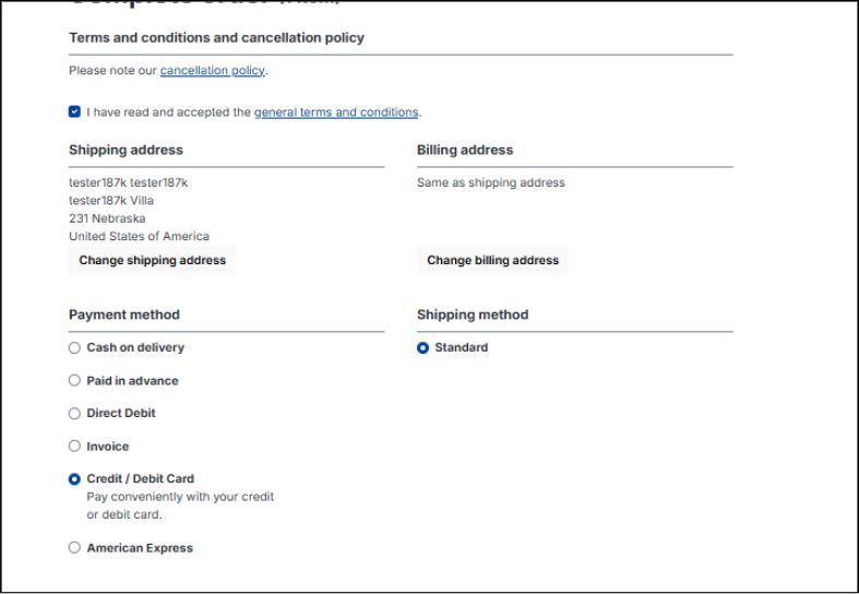 Select a payment method on the checkout page and click ‘Submit Order’ to place the subscription. The subscription will be created and payment processed based on the selected payment method, whether offline or online.