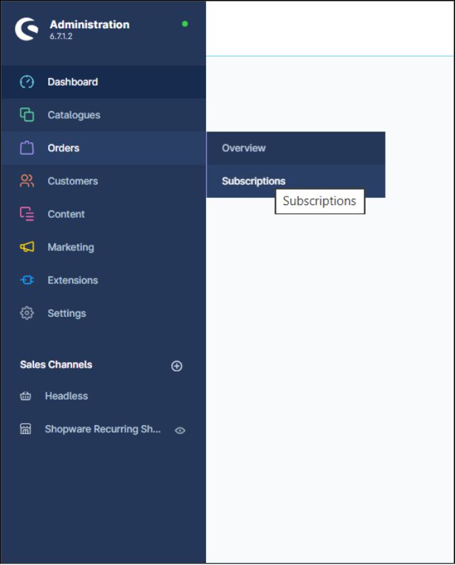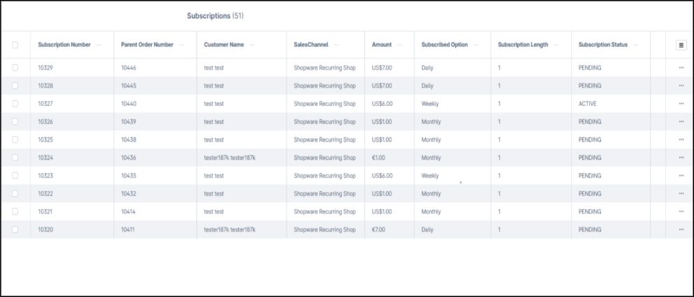 Subscription list can be accessed in Shopware from Orders -> Subscriptions. This will be displayed after installing and activating Subscription plugin.