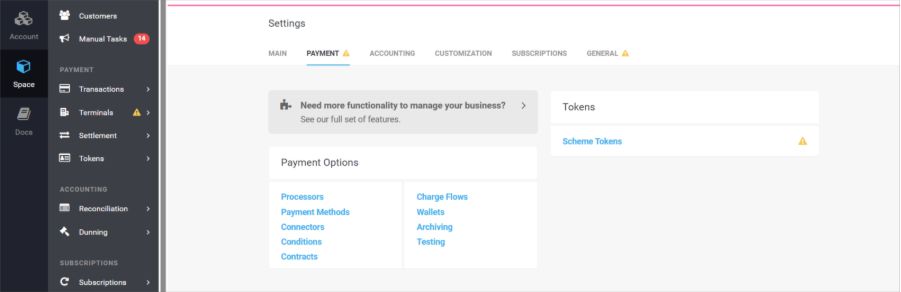 Go to https://app-wallee.com/user/signup to create a wallee account. First configure Wallee merchant account with payment processors and payment methods. Navigate to Space - >Settings -> Payment.