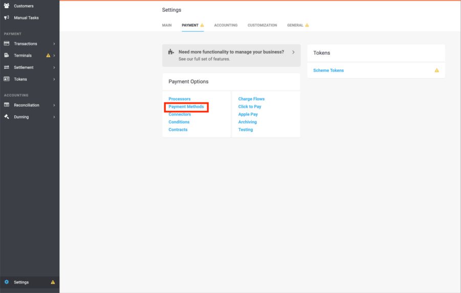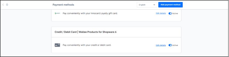Next, go to Settings → Payment → Payment Methods in your Wallee merchant account to configure available payment options.