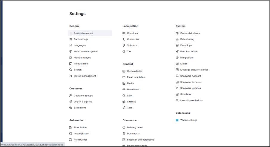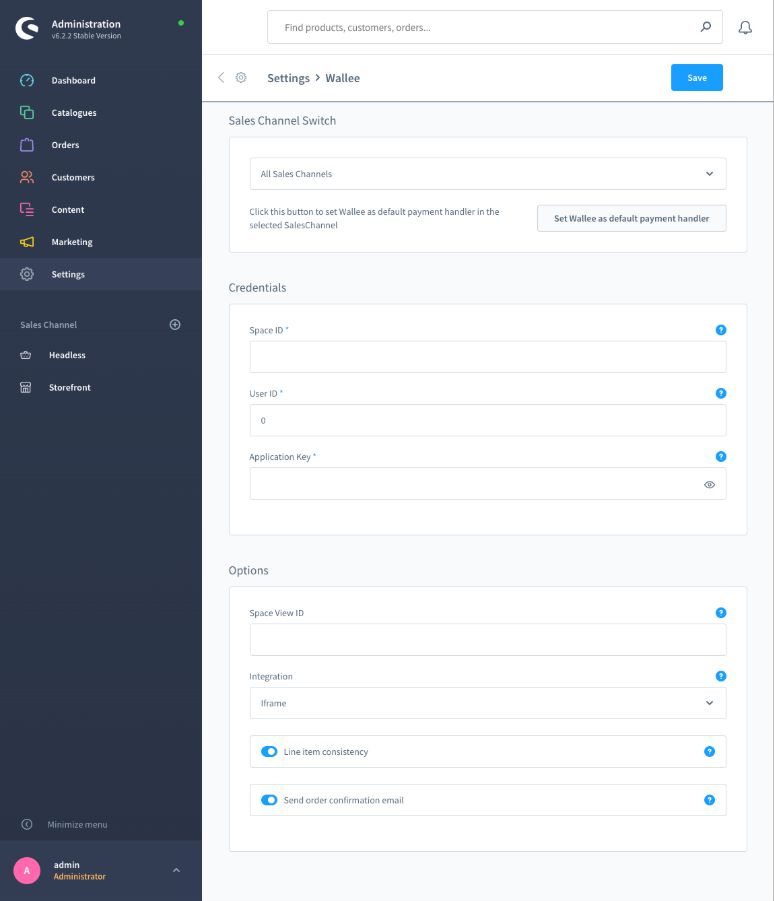 Settings → Extensions → Wallee - Enter the required API credentials: