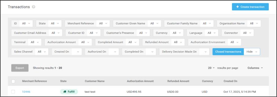 When a customer selects an enabled Wallee payment method during the storefront checkout, they are redirected to either a hosted Payment Page or an embedded Iframe Page, where the payment is processed. Upon successful completion, the transaction details are automatically synced with the merchant’s Wallee account in Space -> Payment -> Transactions.